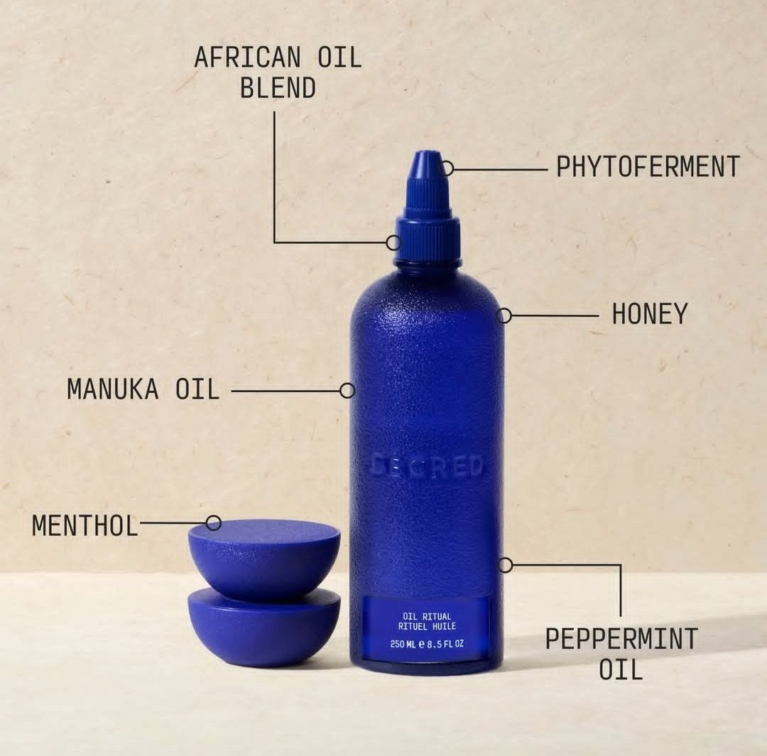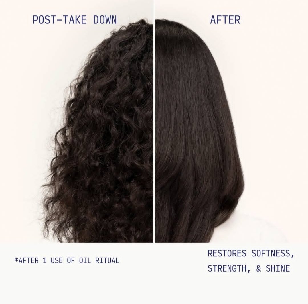 featuring a potent blend of 21 oils, our luxurious Oil Ritual restores dry, dehydrated hair for softness, strength and shine –all while delivering deep scalp nourishment. A blend of PytoFerment and Manuka oil soothes and Nourishes the scalp, while our African oil blend Moisturizes parched hair. The treatment is also infused with peppermint oil for a cooling effect.