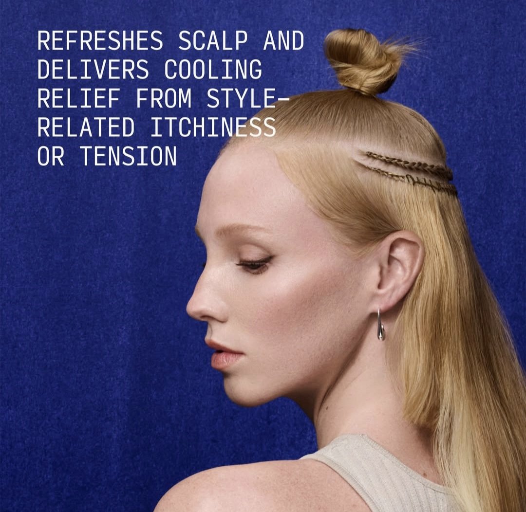 our scalp refreshing spray is an innovative, no-rinse spray that cleanses the scalp and hair with a custom targeted nozzle, breaking hard build-up. A cooling effect offers instant relief from style related itchiness ir tension.