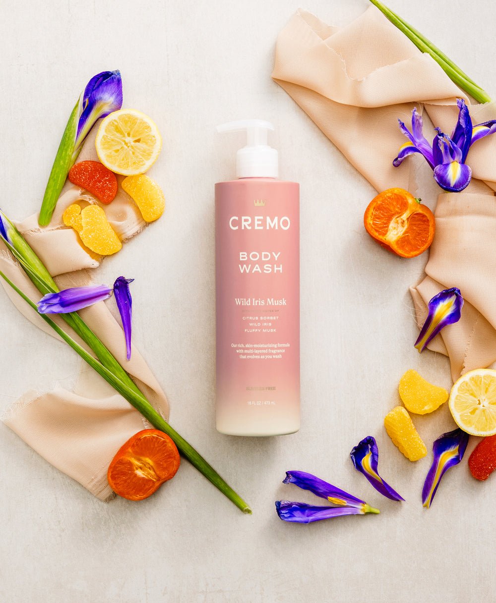 A vibrant burst of citrus Sorbet combines with elegant wild iris flower and a soft musk base. Awaken your senses and have an out of shower experience with cremo Wild iris flower musk body wash.