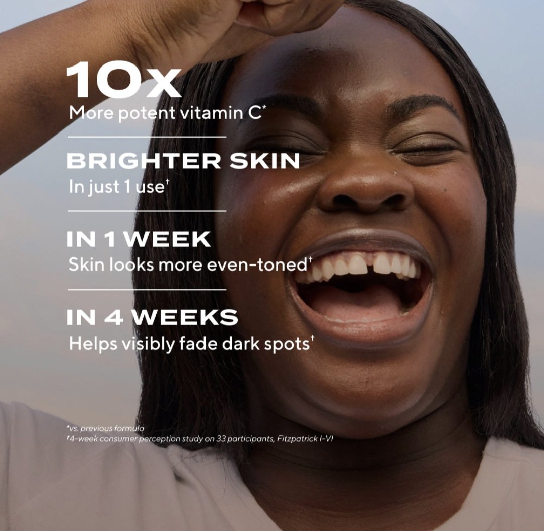 •10x more potent Vitamin C minimizes visible signs of UV damage, including dull and uneven skin.