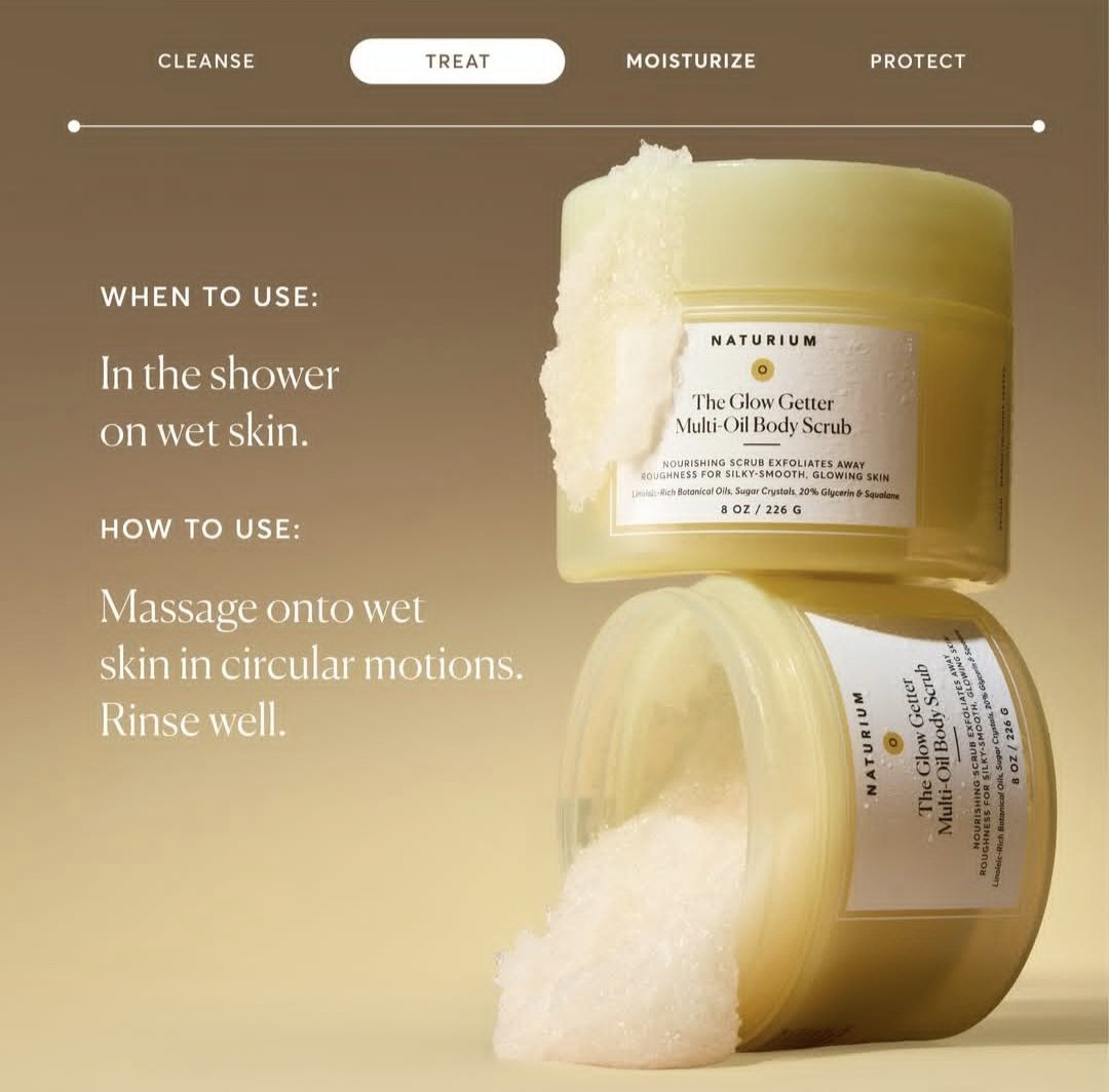 our multi Oil Body Scrub gently exfoliates to reveal radiant skin. formulated with linoleic rich botanical oils, sugar Crystals, 20% Glycerin and Squalane, this scrub helps kesve skin ultra smooth and soft, with a hydrated and healthy looking glow.