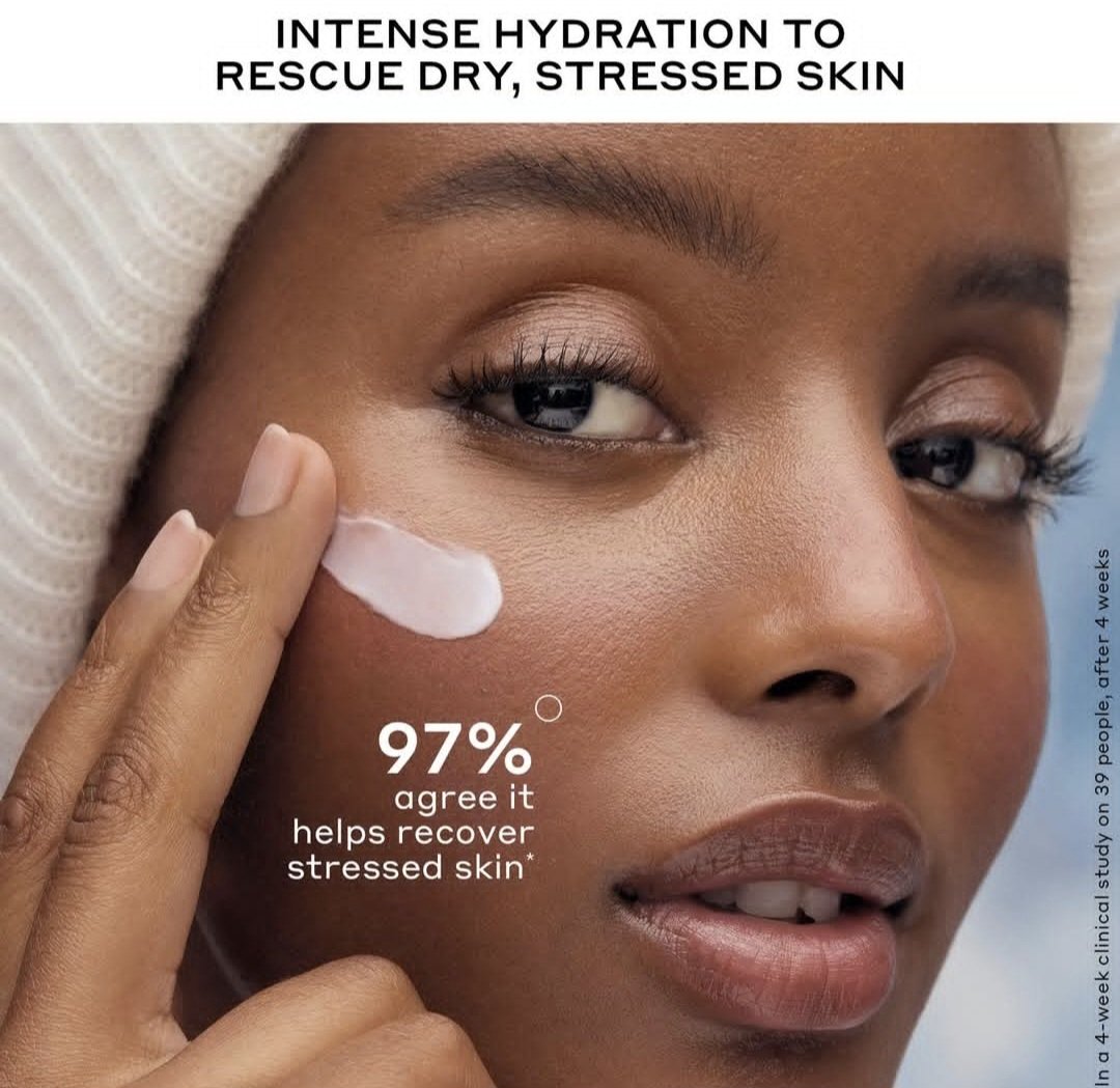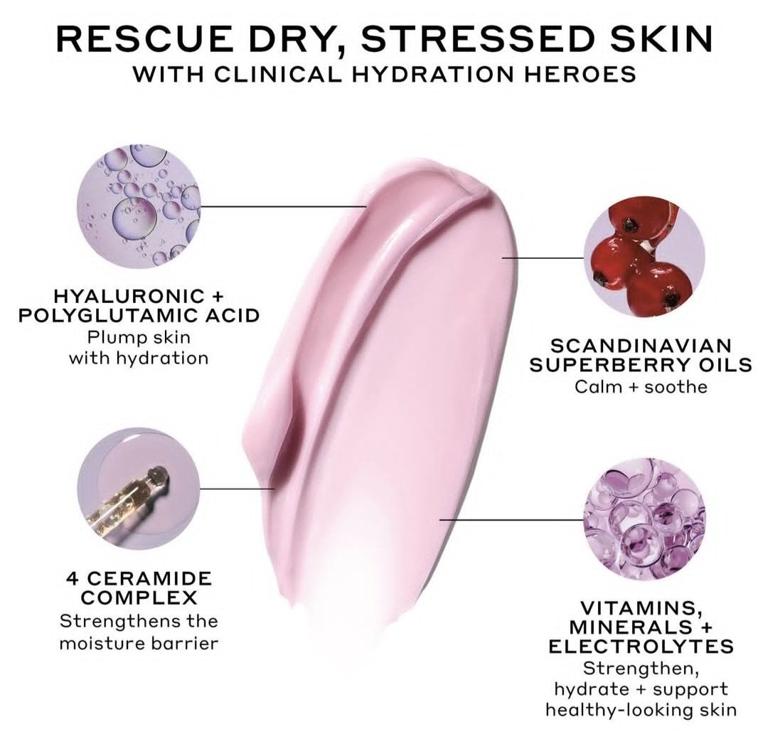 An Ultra-rich moisturizer- with ceramides, Hyaluronic acid, and Niacinamide that instantly hydrates + Strengthens the moisture barrier to soothe dry, stressed skin.