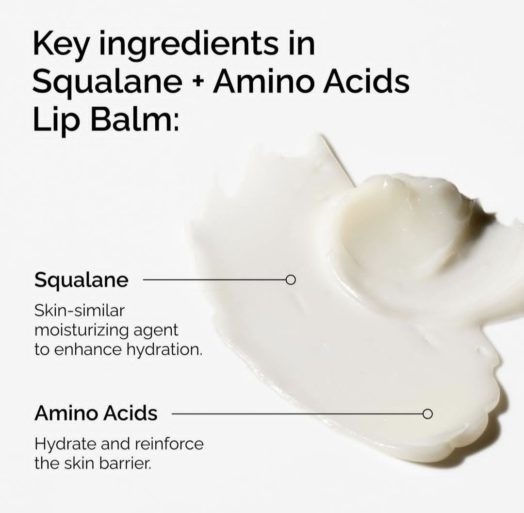 Squalane + Amino acids lip balm is our first multi-use hydration balm designed to soften, nourish and boost moisture within the lips. formulated with well-loved hydrator squalane, the ordinary balm leverages it’s emollience to provide immediate, long lasting hydration and skin barrier support.
